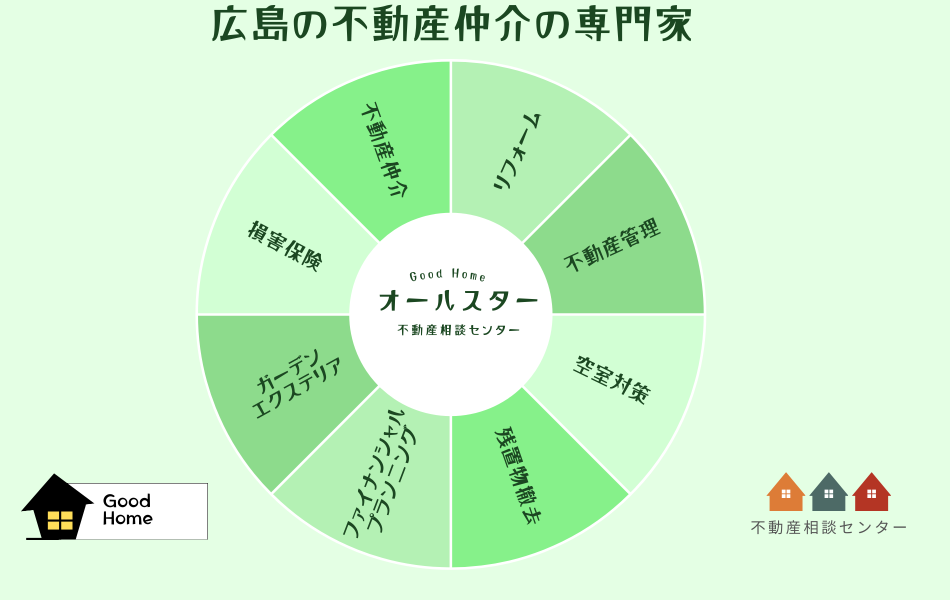 私たちは、広島で、不動産売却、相続に関連する不動産に特化したプロフェッショナル集団です。長年の経験と知識をもとに、お客様のニーズに合わせたサービスを提供しています。