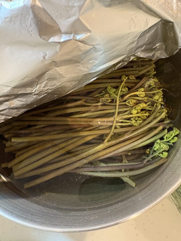 お昼はそばでひと息ついて、帰宅後はふきとわらびの灰汁抜き。
